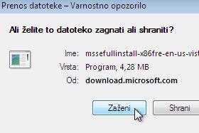 Kliknite tukaj, da odprete spletno stran Microsoft Essentials.