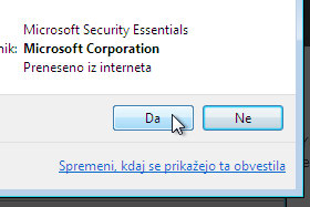 Ko se pojavi varnostno okno, kliknite na gumb Da.