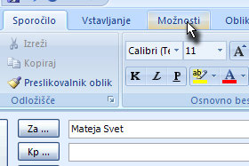 sedaj v sporočilu kliknite na zavihek Možnosti.