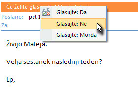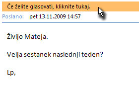 V sporočilu se nahaja polje za glasovanje (glej sliko), kjer z miško kliknete nanj ...