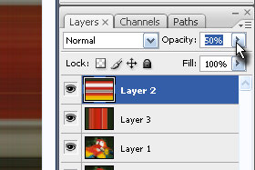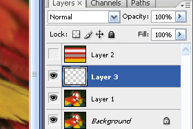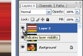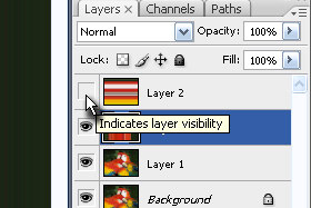 Kliknite sedaj na prostor ikone z očesom zgornjega layerja (glej sliko), da ga boste ponovno prikazali.