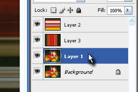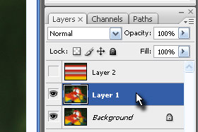 Kliknite sedaj na ikono z očesom zgornjega layerja (glej sliko), da ga boste začasno skrili.