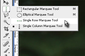 Držite z miško na orodju Single Column Marquee Tool (bližnjica je tipka M) toliko časa, dokler se ne prikažejo ostala orodja. |
