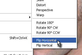 Potem pa kliknite zgoraj na Edit, Transform in izberite Flip Horizontal. |
