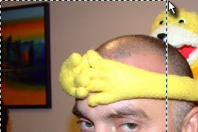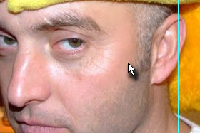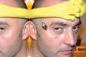 V mojem primeru se bo zrcaljenje začelo pri ušesu (glej sliko). |
