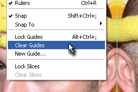 Kliknite zgoraj na View in izebrite Clear Guides.