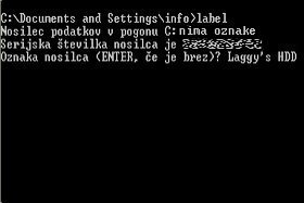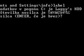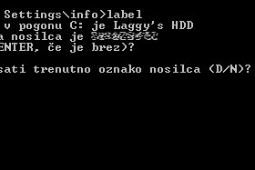 Ali res želite izbrisati ime diska? Če želite nadaljevati, vpišite D, če pa ne želite nadaljevati, pa vpišite N ter še pritisnite tipko Enter. |