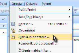 ... in izberite Pravila in opozorila ...