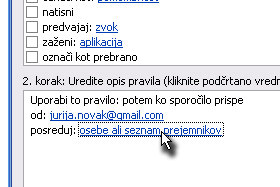 Potem v novem oknu označite posreduj: osebe ali seznam prejemnikov.