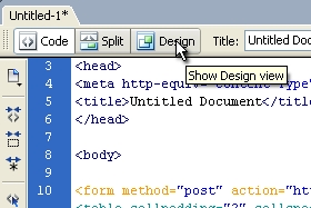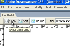 Ko se nam dokument ustvari, kliknemo na gumb Code, da se nam stran odpre v kodnem načinu.