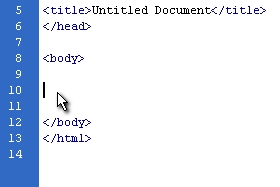 Premaknimo se med vrstico <body> in </body> ...