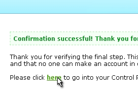 Odprla se vam je nova stran, na kateri piše, da ste se uspešno reistrirali. Kliknemo tja kjer piše Here (glej sliko).