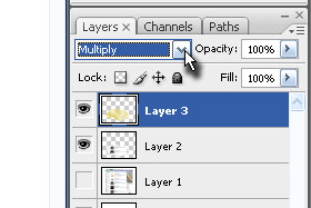 Sedaj layerju določite senčenje na Muliply (glej sliko).