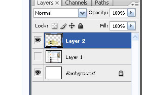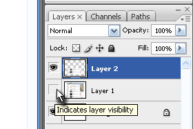Sedaj spodnji layer skrijte tako, da kliknite na ikono, ki je za prikazovanje layerja (glej sliko).