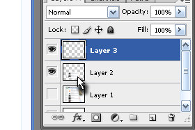 Sedaj pa držite tipko CTRL in kliknite na spodnji layer, ki ste ga prej duplicirali.