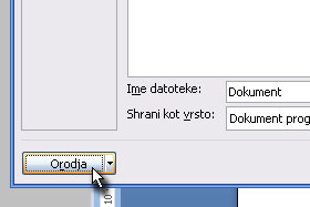 V oknu za shranjevanje kliknite na gumb Orodja...