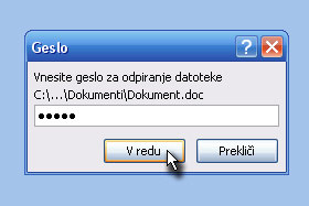 Preden se bo dokument odprl, bo potrebno vpisati geslo.