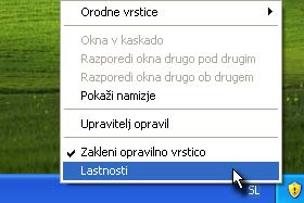 Kliknite z desnim miškinim gumbom na prazno opravilno vrstico in izberite Lastnosti.