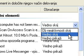 Ob neaktivnosti skrij pomeni, da se bo ikona pojavila samo, ko bo to potrebno.