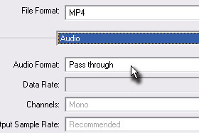 Nato preko izbirnika določite Audio in Audio Format na Pass through (glej sliko).