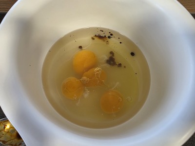 Potem pa to posodo postopoma dodajajte v prejšnjo posodo. |