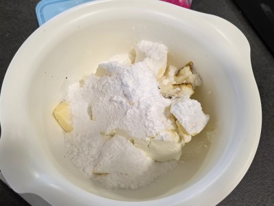 Priprpavili bomo še drugi del recepta, ki predstavlja glazuro. V neko posodo dodajte 500 gramov kremnega sira, ki ima sobno temperaturo, 120 gramov masla, prav tko s sobno temperaturo. 1 malo žlico vanilijeva ekstrakta in 300 gramov sladkorja v prahu. |