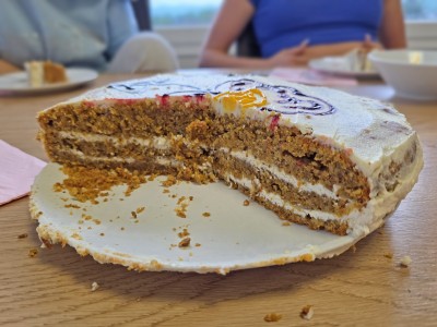Torta je bila res božanska in tudi nasitna. En kos ali dva mala bosta dovolj :) |