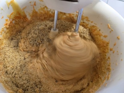 Dodajte v posodo 4 jajca, 200 gramov sladkorja, 1 malo žličko vanilijeva ekstrakta in 400 ml rastlinskega olja. Naj vas količina olja ne prestraši. |