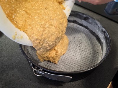 Vlijte maso v pekač, katerega ste prej malo pomokali in namazali z maslom, da se ne bo prijelo. |