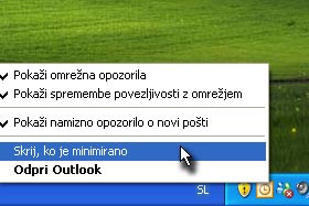 Outlook bo odslej, ko bo minimiran, skrit v tej ikoni.