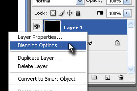 Kliknite sedaj na z desnim miškinim gumom na ustvarjen layer in izberite Blending Options... |