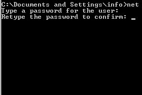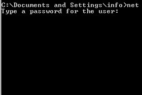 Napisalo vam bo Type a password for the user:. Vpišite novo geslo in pritisnite tipko ENTER.