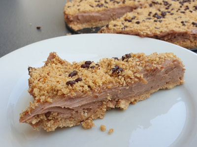 Dodajte še čokoladne mrvice, drobljene lešnike ali pa drugi posip po vaši želji. Za posip lahko tudi naribate čokolado. Torto dajte v hladilnik za 8 ur, da postane čvrsta. |