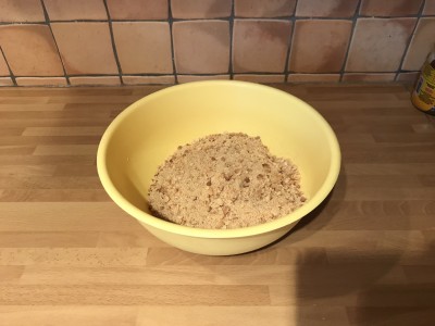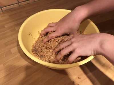 Zdrobite 250g maslenih keksov in jih postavite v neko posodo. |