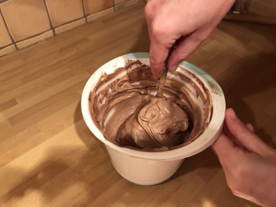 Stopljeno maslo in lešnikov namaz izgledata takole. |