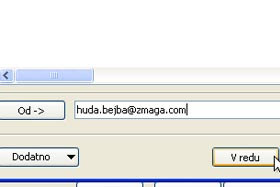V polje Od-> vpišite e-poštni naslov. Jaz bom vpisal e-naslov od Hude bejbe in kliknil na gumb V redu.