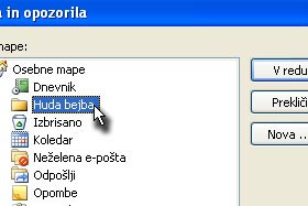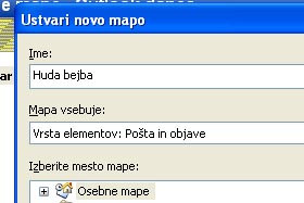 Jaz bom vpisal Huda bejba, ker mi bo vso pošto od Hude bejbe preneslo v to mapo. Mapa naj vsebuje Vrsto elementov: Pošta in objave in spodaj naj bo označena mapa Osebne mape. Kliknite še na gumb OK. |