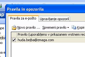 V oknu Pravila in opozorila imate kreirano novo pravilo.