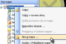V Osebni mapi se vam je sedaj kreirala nova mapa.
