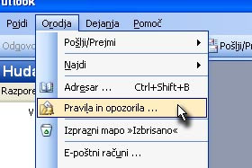 Kliknite na Orodja in izberite Pravila in opozorila ...