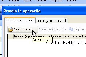 Odpre se vam novo okno. Kliknite na gumb Novo pravilo ...