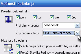 Ta možnost nam poleg koledarja prikaže še številke tednov. |