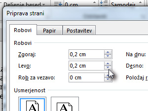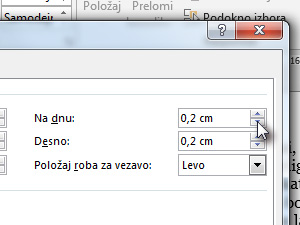 ![]() V novem oknu v polju Robovi nastavite Zgoraj in Levo na željeno razdaljo. Jaz sem nastavil 0,2 cm. |