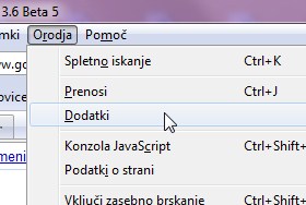 Zgoraj v meniju izberite Orodja in nato Dodatki.