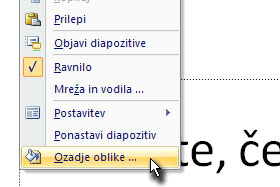 Kliknite na dokument z desnim miškinim gumbom in izberite Ozadje oblike ...