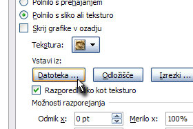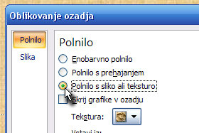 V novem oknu označite na levi Polnilo in nato Polnilo s sliko ali teksturo.