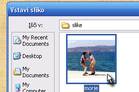 V oknu z raziskovalcem označite poljubno slikovno datoteko in klikni Vstavi.