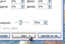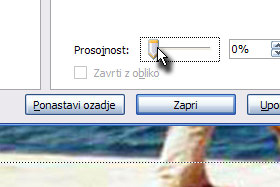 Potem pa v istem oknu držite z miško drsnik za Prosojnost...