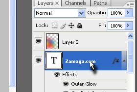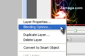 Sedaj izberemo Layer s pisavo ter kliknemo nanj z desnim gumbom na miški nato pa izberemo Blending Options.