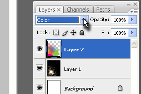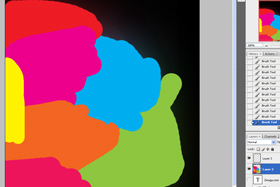 Izberite več različnih barv, najbolje je, da so to tople barve. Pozor, ne pozabite, da delamo na novem Layer-u. |